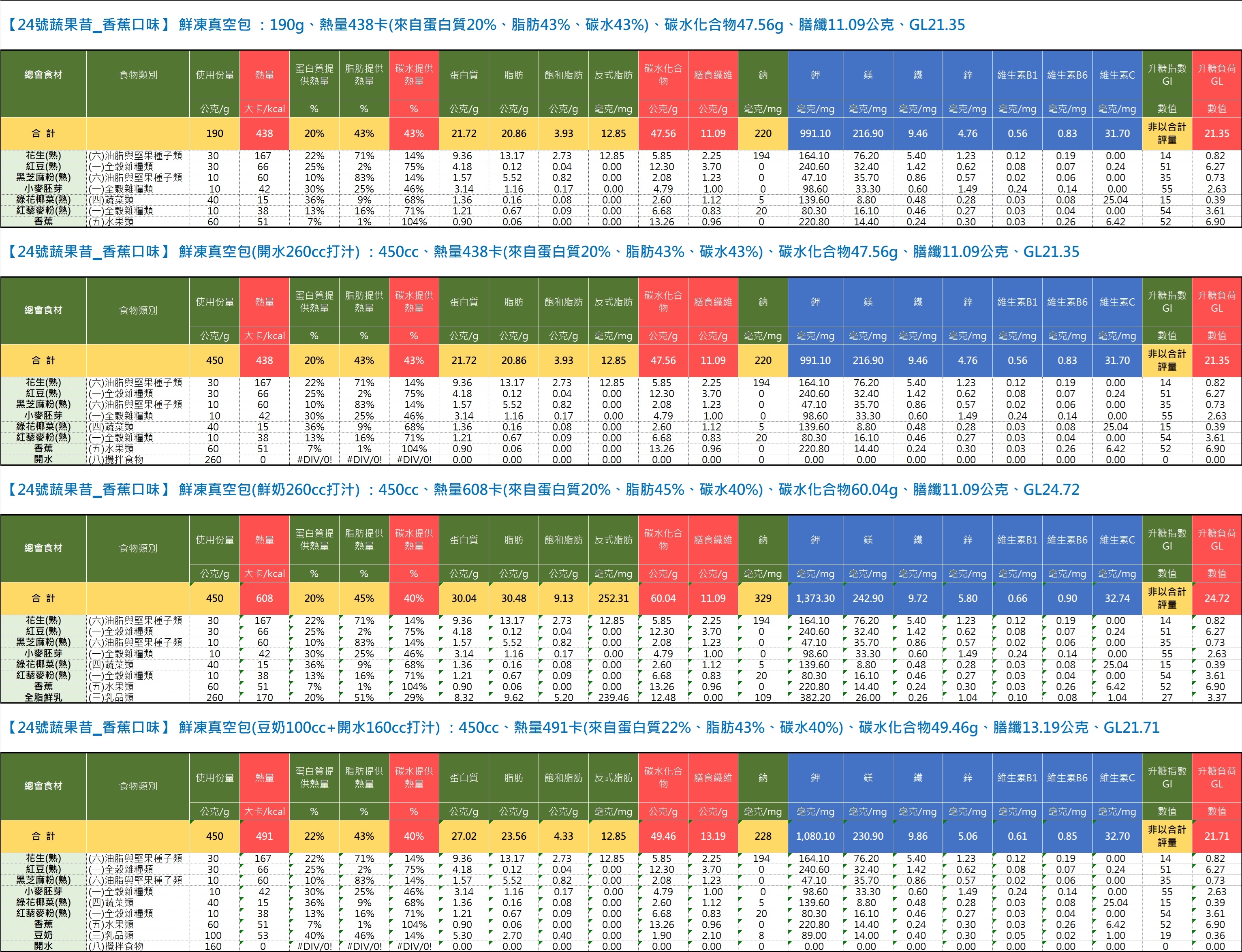 【24號蔬果昔ˍ香蕉口味】 鮮凍真空包