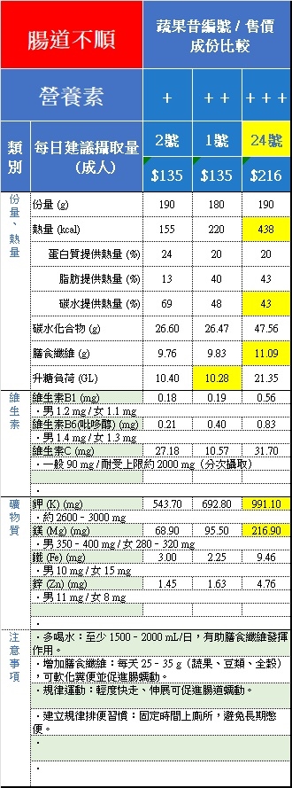 - 客製說明:本公司六大類食材可為官網會員量身客製專屬的健康蔬果昔。