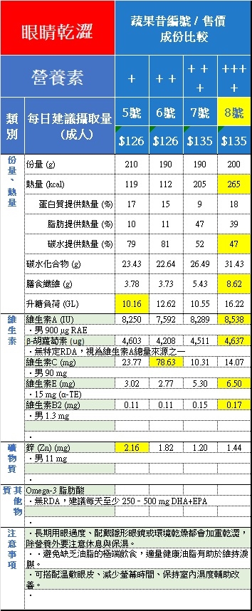 【食物營養成分表】:本公司選用食材之重要營養成分表,敬請