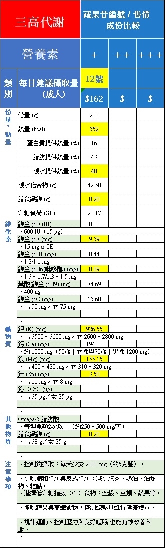 【食物營養成分表】:本公司選用食材之重要營養成分表,敬請