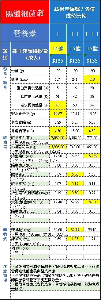 【食物營養成分表】:本公司選用食材之重要營養成分表,敬請