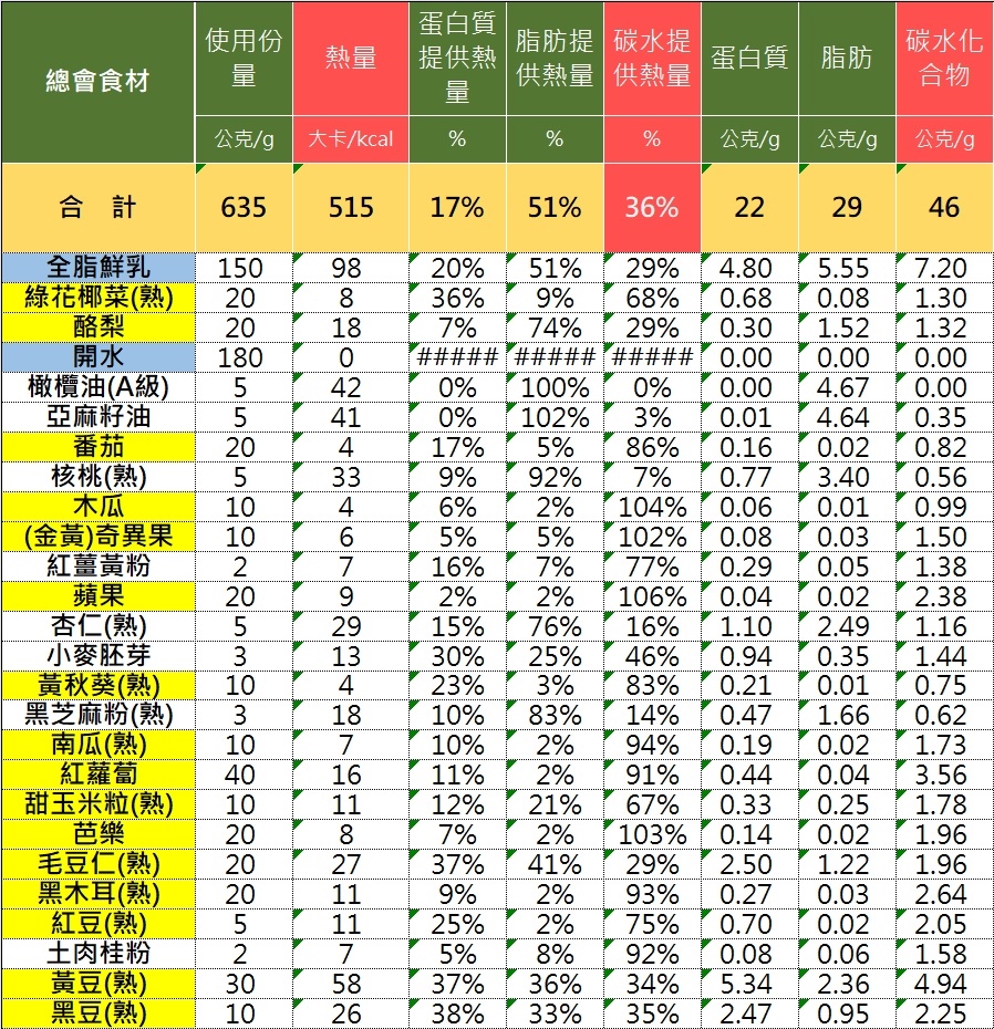1. 客製能滿足個別的需要,每杯選擇的食材總量宜不超過200g,且必須要選擇250cc之開水、鮮奶或豆奶其一,做為打汁的基底。